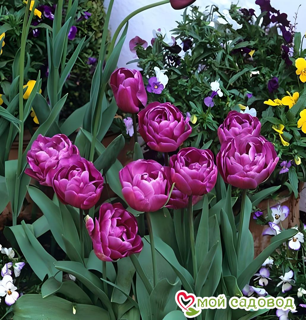 Роскошный тюльпан ,абсолютный фаворит на любой клумбе. Принадлежит к сорту пионовидные,цвет насыщенный фиолетовый,лепестки плотные и глянцевые. Декоративен и красив в любом окружении. высота 45-50см.